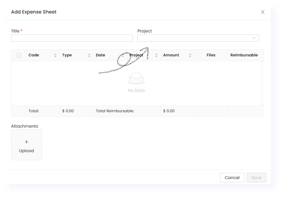 Tip: By default, you will be able to see all Expense Lines created. You can filter all Expense Lines attributed to a particular project using the Project drop-down in the pop up. You will only be able to see projects to which you are assigned as a Resource.
